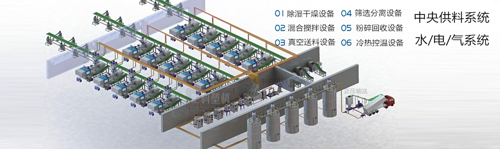 - 使用'匯科‘中央供料系統(tǒng)可實(shí)現(xiàn)將多種原料自動(dòng)供給多室任意的注塑加工設(shè)備使用,在這其中可包括原料的干燥處理、配色處理、以及按比例的粉碎回收料利用,能夠?qū)嵭懈叨鹊淖詣?dòng)化控制、監(jiān)測等、并能滿足24小時(shí)不
